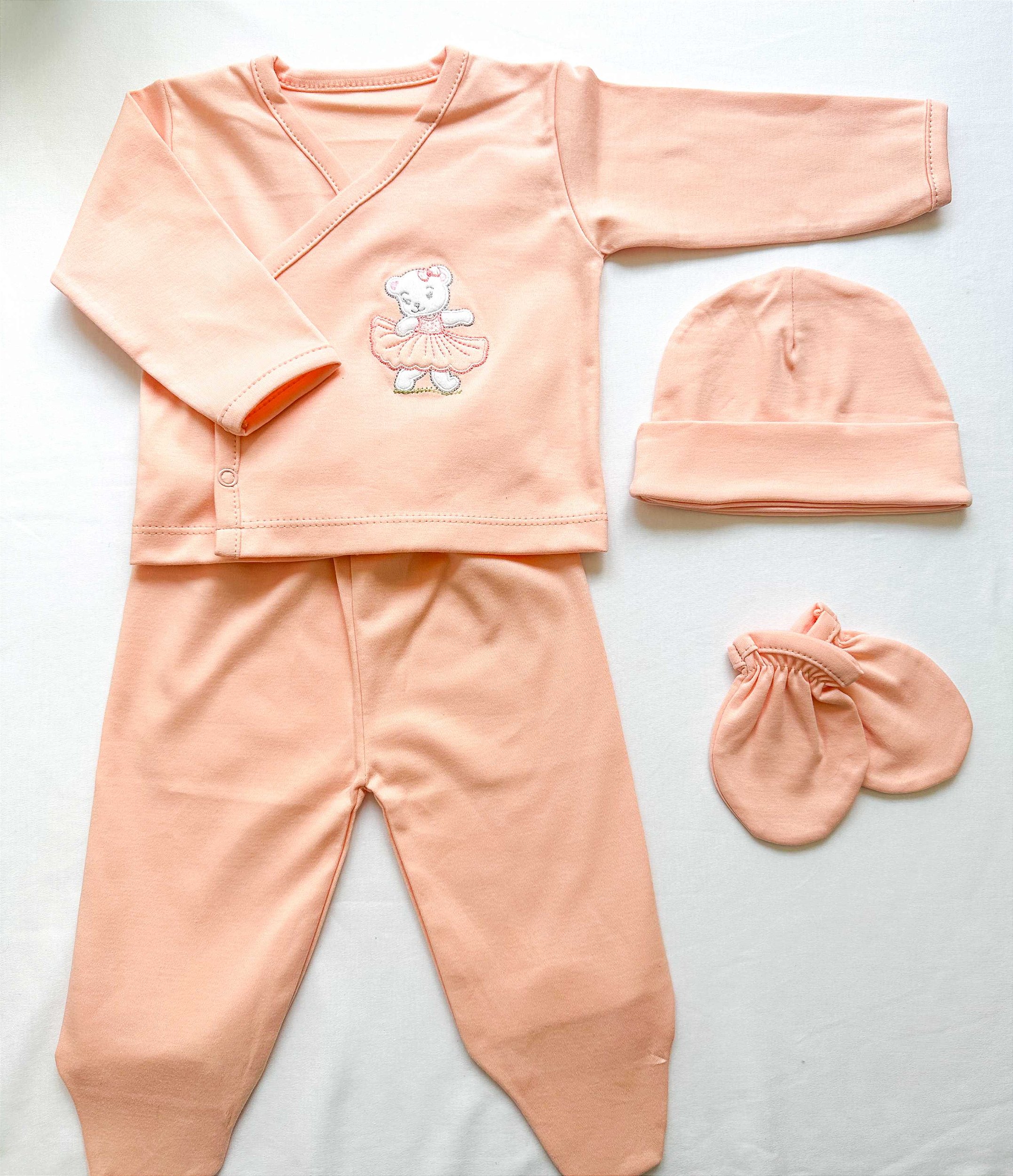KIT CASACO + GORRO + LUVA + CALÇA COR SALMÃO