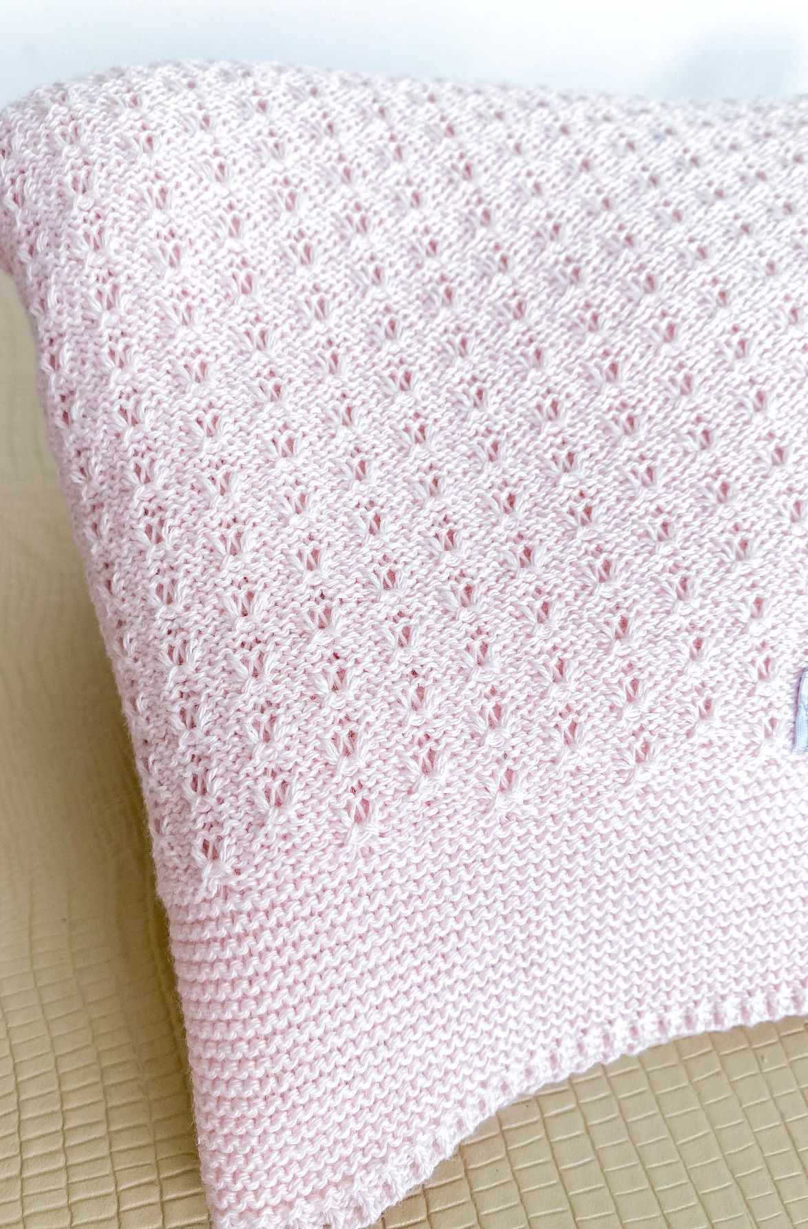 Manta em tricot Rosa Bebê com um recorte lindíssimo